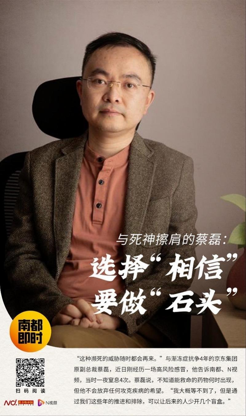 南都此前报道,蔡磊团队回复南都记者称,蔡磊已经发声困难,但他仍在全力推进渐冻症科研。2024年,团队成功促进了10条药物管线进入临床阶段,为渐冻症病友带来了新的希望。